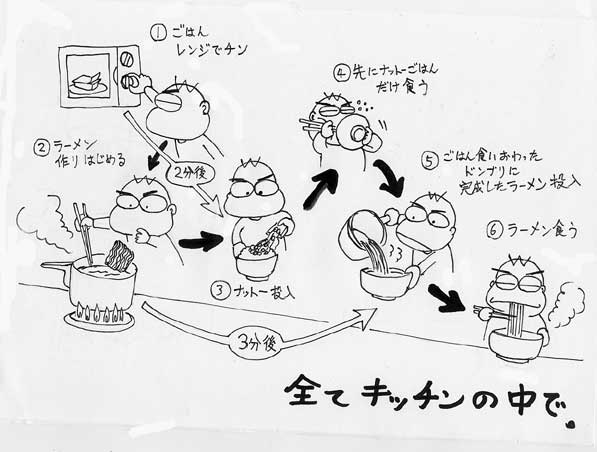 まずキッチンから出ない。調理中はもちろん、食事もその場で立ち食い。