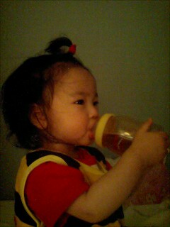 ナナは、お茶などを飲む時はまだ哺乳瓶を使っている。