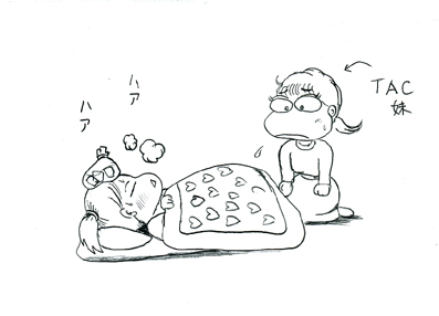 看病をするTAC妹に対し、マユが息も絶え絶えに言うのである。