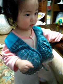 最初に発した単語は返事の際の「はい」だが、次に覚えたのは想像どーりと言うか何と言うか「おいちい」。(食い意地張ってるからね)