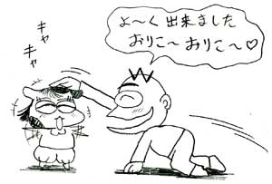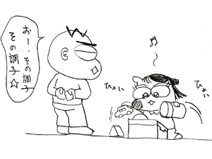 ナナにウケるのをいいことに、TACがいつもこーゆー一人ボケ一人ツッコミ的な替え歌ばかりを歌ってあげるせいか、すっかりそっちの方を覚えてしまったナナ。はい、ボクのせいです。
