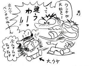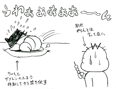一度「食べ物」をロックオンすると、それが己の口に入るその瞬間まで大騒ぎ。