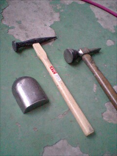 すぐさまハンマーで熱した場所をオンドリーで打つ。