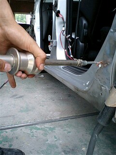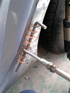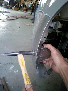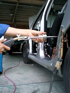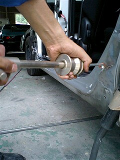 このように、鈑金の基本はあくまでハンマリングだが・・・実はハンマリングでは直せない箇所が車には多い。
