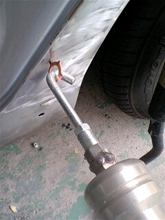 裏に手が入らない場所の凹みを表側からの干渉だけで引っ張り出す魔法の箱。コレがないと自動車鈑金は正直ハナシにならない。