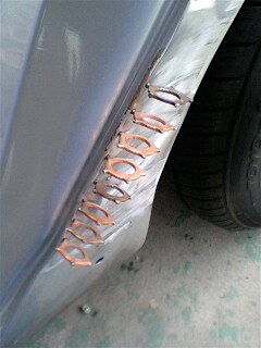 ボンネットやドアなど、ボルトオンで付いてるヤツは簡単に交換できるが、写真のようなクォーターパネル(リアフェンダー:給油口が付いてるあたり)のように本体と一体になってる