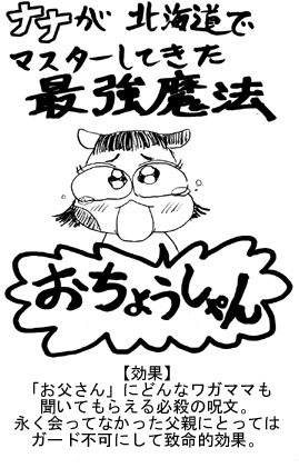 北海道に里帰りしてる3ヶ月の間に、ついに「おとうしゃん」という言葉をマスターしたナナ。他の誰でもなく、自分に対して我が子から「おとうしゃん」と呼ばれるこの初めての経験。ダメ、絶対。全てのロックが外れる。なんでも許してしまう。