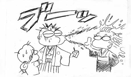 突然妹ミボ・シロー・従兄妹有之助・アキトが美濃祭りの花を持って乱入。