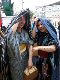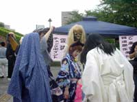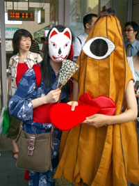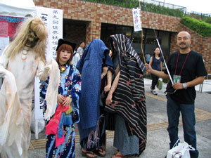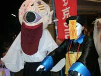 「チームあーりんず」のリーダー・あーりんさんは昔懐かしのキョンシー。パレード中ずっと、あの独特の前ならえピョンピョン移動を徹していた根性(と体力)に頭が下がる。しかしどんな衣装も捜せばあるもんなんだなあ・・・。 今回初参加の紙舞君は昨年フジコが着た一つ目小僧の衣装で参加。たった一年でずいぶん身長が伸びたものだ。