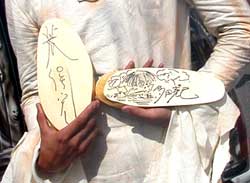 太郎坊さんが扮するは、黒い体毛に覆われた妖獣しゃんこま。 郁丸さんのヤサブロマサは一見「雪女」と混同されがちだが、新潟に古くから伝わる独特の妖怪で、吹雪の夜に悪い子をさらっていく白い老婆だそうな。彼女が描いたヤサブロマサの絵葉書を貰ったが、素朴でとてもイイ感じ。 どちらもTACの知らない妖怪だった。