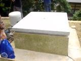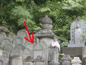 写真矢印のホームベース型の墓石がお菊さんの墓である。かつては別の場所にあったのを移転させたものらしい。