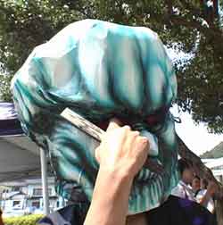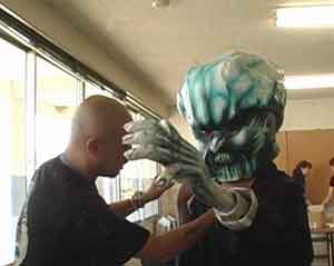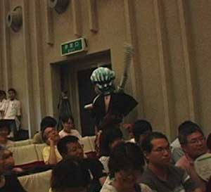 スタッフ控え室には、映画「妖怪大戦争」で実際に使用された妖怪の被り物(なめくじら、髪きり、天狗)や他のスタッフが着るのであろう妖怪衣装などがさも当然のように置かれたなかなかアヤしい部屋だった。多くのスタッフが慌しく動いている。