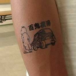 それがタトゥーシールを後頭部に貼られた入道さんだと気付くのに数秒費やす。