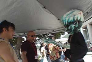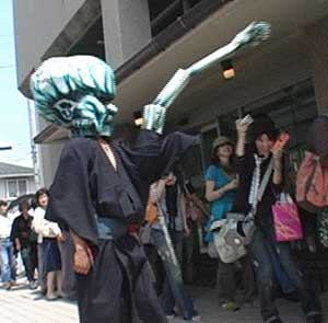 入り口に並ぶ列も建物の角に沿って折れ曲がり、なお伸び続けている。あちこちにハンドメイドな妖怪さんが闊歩し、時々小さなお子様の泣き声や悲鳴が響き、ワケわからん空間になっている。