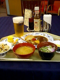 ちゃんとフェリーに戻って夕食喰らってます。さっきの仙台写真は途中停泊地の一時下船ですた☆