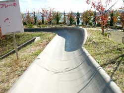 ブレーキレバー付きのローラーそりで、コンクリートの溝のようなコースをカッ飛んで行くアレですね。