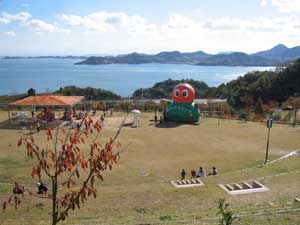 ゲートをくぐると、穏やかな瀬戸内海とパーク内を一望できるバルコニーに出ます。