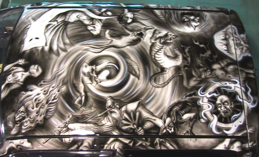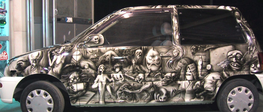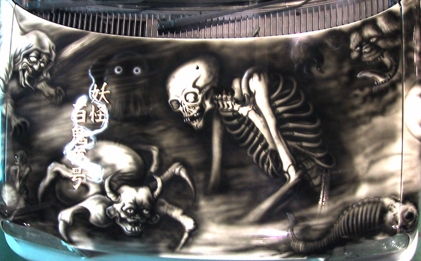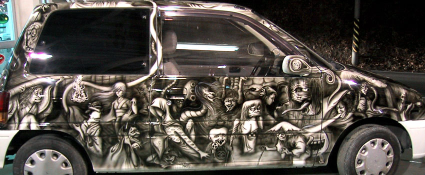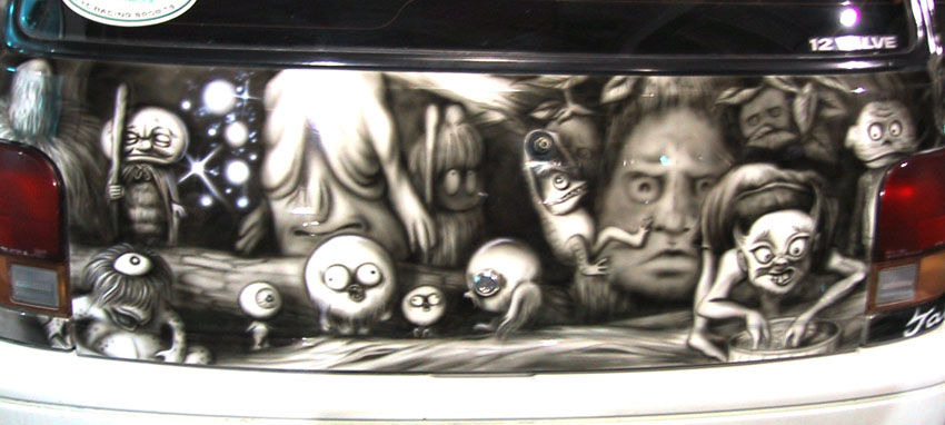 次はバックドアのクリアーに移りたいが、バックドアの上部・・・つまりルーフと隣り合わせになる場所に妖怪を描くスペースが残ってるので、先にそっちを埋めなきゃね。