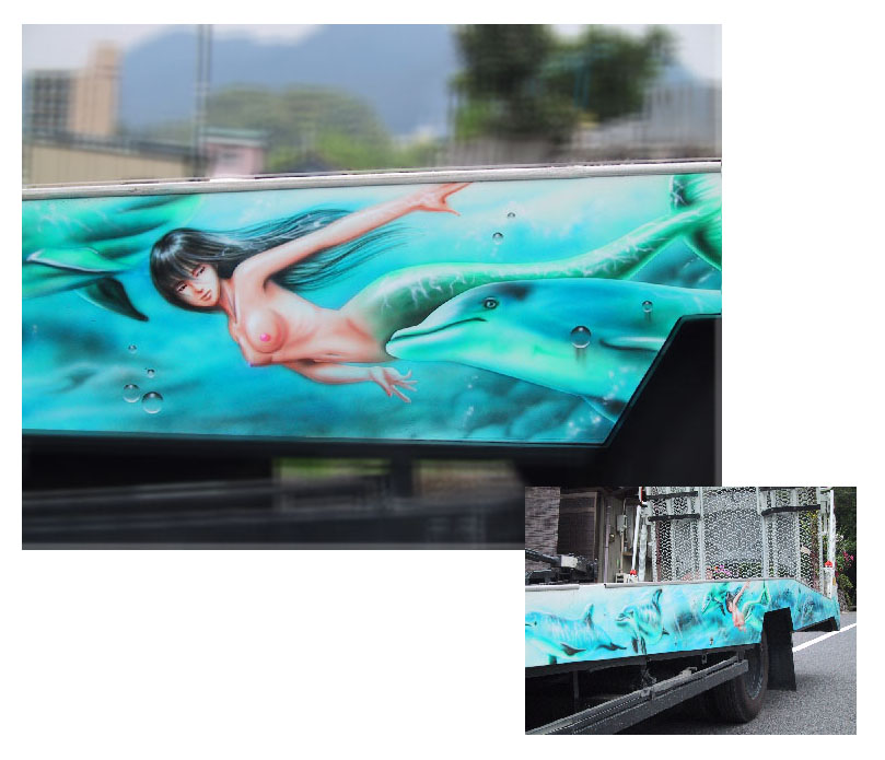 仕事で受ける最も多い注文は、やっぱりいわゆる「C・ラッセン調」の絵です。ハッキリ言って、イルカは簡単なんです。手強いのは珊瑚や波などの、「海」を構成する様々なディテール。その点、ラッセンさんの海の描写は素直に敬服します。ホントすごい。その辺りを練習するつもりで描いた絵がコレ。人魚はオマケです。ちょっとアニメっぽい顔になっちゃってますが、わりと気に入ってる絵です。