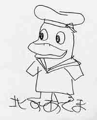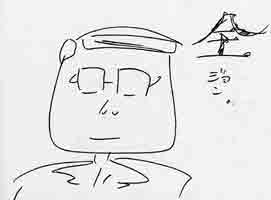 帽子までは調子よく描いてたけど、そっから先の線が一気に自信無くしてるのが手に取るよーに判る絵ですね。